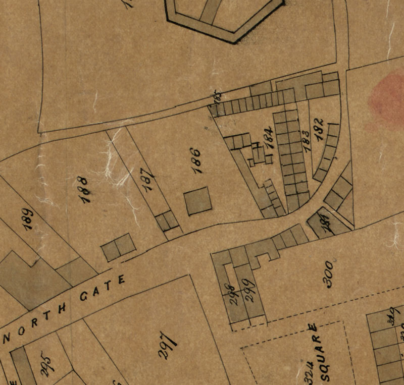 Castle Bailey House, Northgate, on the 1854 and 1887 Town Plans.