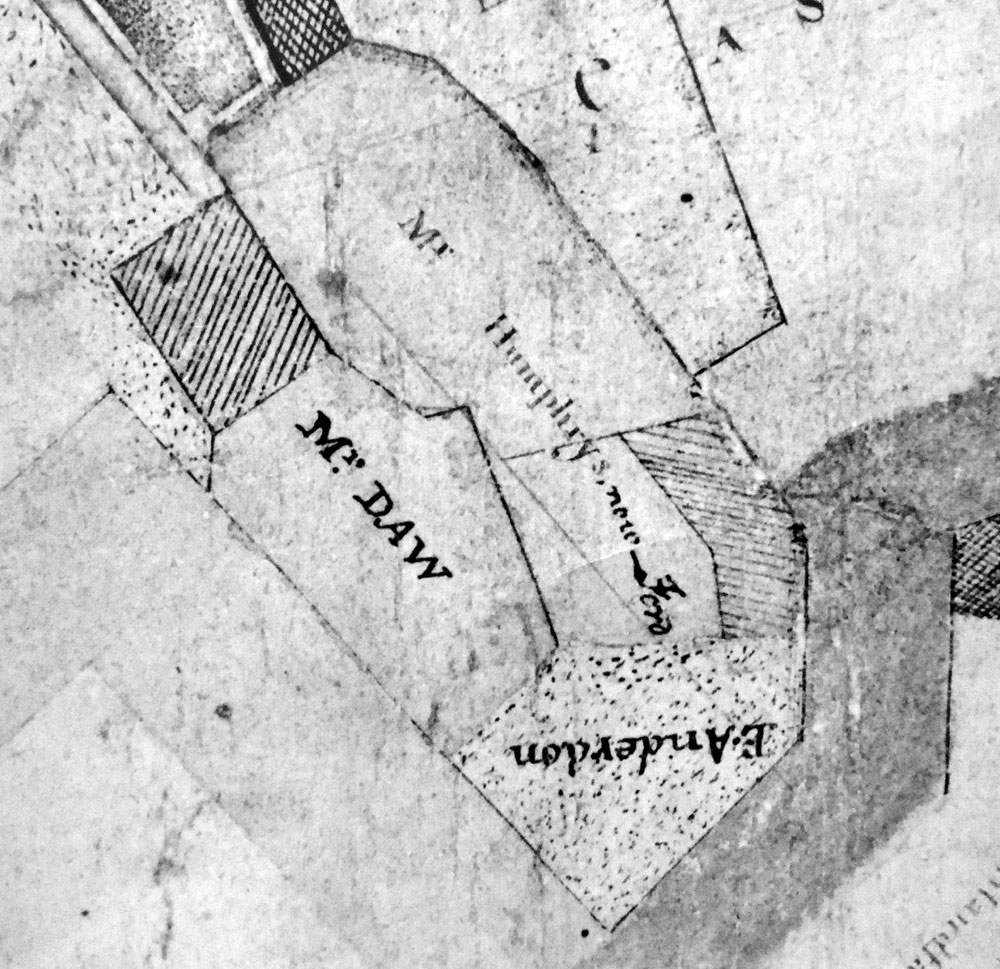 The property is shown in better detail on the 1854 Town Plan. By the time of the 1887 Town Plan, part of the land on the east side had been hived off.