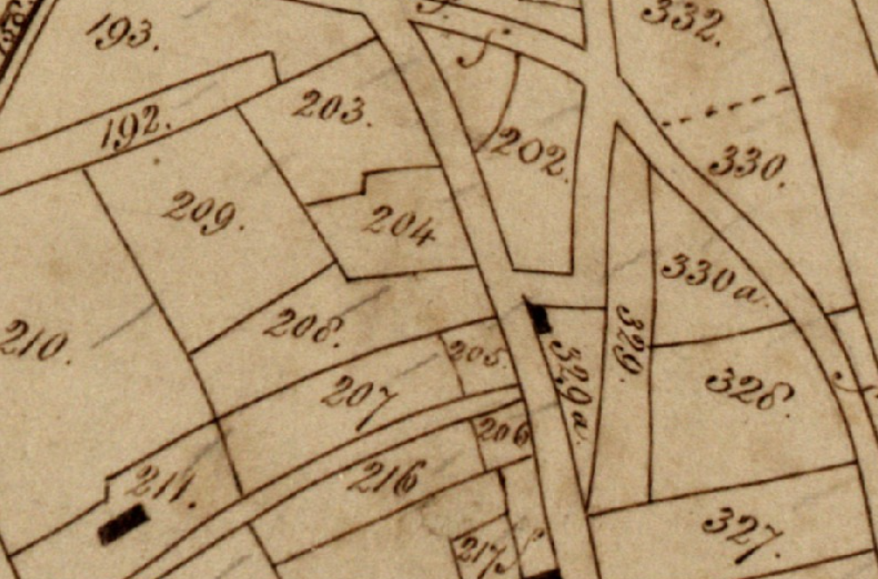 Tithe Apportionment Map for the 1840s. The Hope Inn would be on plot 208. Hamp Manor is 211 in the bottom left, while 329a is the Taunton Road Toll House.