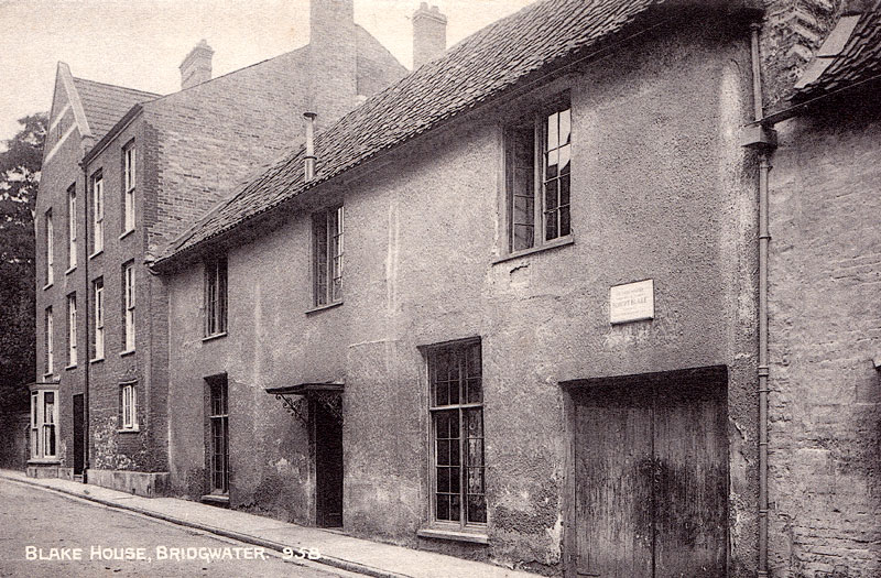 The house that, above all others, must attract the attention of visitors to Bridgwater, in the bourse in which Admiral Blake was born. It is situate in a small street which appropriately bears the name of the hero; and adjoins a mill in which business is still carried on and which is supposed to have been in operation ever since the days of William the Conqueror, as it is mentioned in the earliest records of the town. Those who expect to find the hero’s birth-place a picturesque, tumbling-down, gimlet concoction of gable-ends and bow-windows and projecting upper storeys will be disappointed. One may reasonably suppose that in the course of time the exterior of the building has undergone alterations that have materially changed its appearance. It is now a plain, smooth-faced, comfortable-looking house, the doorway, sheltered by projection and flanked by sash-windows, those on the ground-floor reaching to the floor.