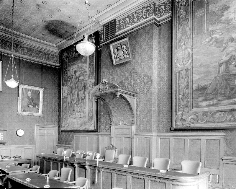 Proposing that the council should dispose of the tapestries to a museum Councillor R. J. Newcombe said, “If we want to make this Council Chamber more cheerful they will have to go.”